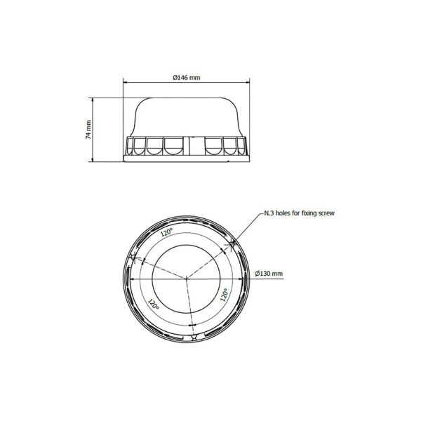 afmetingen: Ø140mm, hoogte 70mm 3-puntbevestiging Ø6mm D14756 E9 006172 keurmerk: ECE R65 R10 3 verschillende flitspatronen spanning: 10-30 Volt, multivolt PEGASUS LED