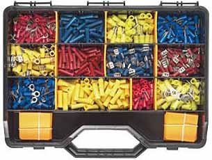Inhoud o.a. vlakstekers male en female, kogel male en female, ringen en doorverbinders. Deze set heeft de meest voorkomende kabelschoenen en is de ideale basis om in uw werkplaats te hebben.