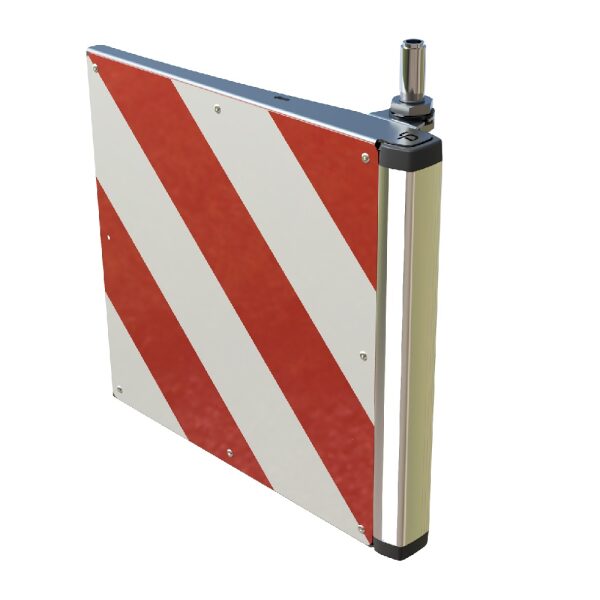 linksachter (stuurkant). dit klapbord is linksachter te gebruiken. Markeringsbord 423x423mm 2-polige DIN zwaailamp opzetsteun Voorzien van verticale witte en rode ledstrip-verlichting. 3-aderige spiraal met 7-polige stekker. spanning: 10-30 Volt Dit bord is eenvoudig met een stang/koker (bovenkant,onderkant, midden op het bordframe) aan het voertuig te bevestigen. (stang wordt niet meegeleverd) Bord is 423 x 423mm retroreflecterend, verplicht Belgie 1/1/2016 volgens RA2 NB NEN 12899-1 norm.breedtebord compleet omklapbaar links voor