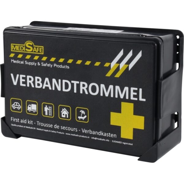 Verplicht in vrachtwagens boven de 3500kg laadvermogen. Verbanddoos conform DIN 13164. De verbanddoos wordt geleverd inclusief wandhouder. De verbanddoos is gemaakt van gerecycled PP. Beschermen tegen direct zonlicht en vochtigheid. Na gebruik verbanddoos controleren en aanvullen. Steriele producten tijdig vervangen. Voor de uiterste houdbaarheidsdatum; zie zijkant van de verbanddoos. houdbaarheid: max 5 jaar Wordt geleverd inclusief ophangbeugel. lengte: 260mm breedte: 170mm hoogte: 80mmVerbandtrommel EHBO/BHV