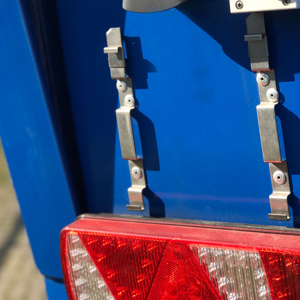 Pop of schroef de klemmen op het voertuig en door de veerwerking kunt u gemakkelijk de borden plaatsen en ook weer wegnemen.