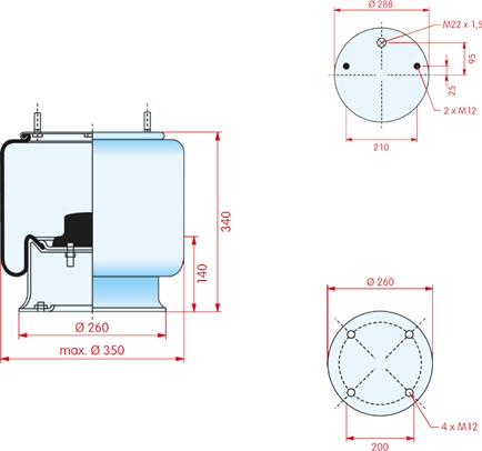 Koop luchtbalg SAF 2 x draadeind eenvoudig en snel bij Truckonderdelenshop.nl.