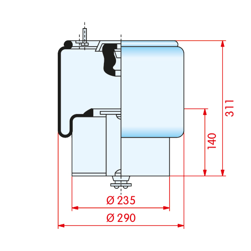 Luchtbalg SAF type 2618/E5 met kunststof onderpot