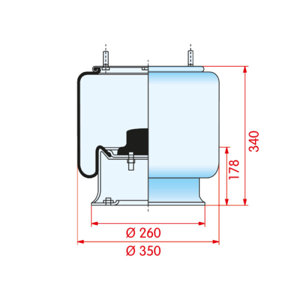 Luchtbalg SAF type 2618/E5 met kunststof onderpot