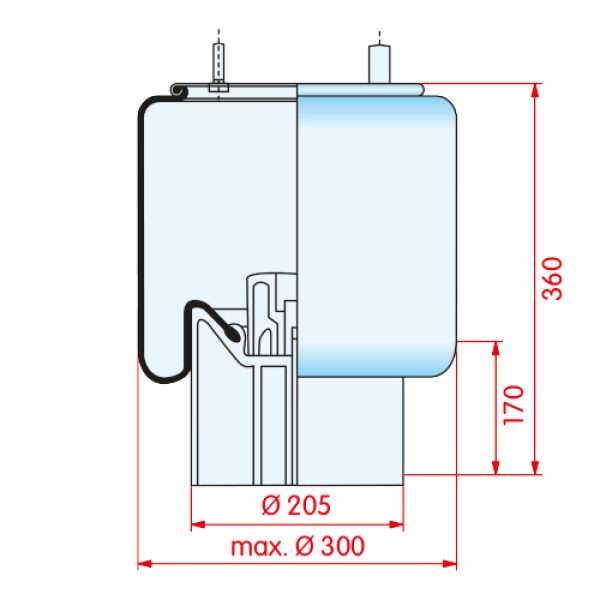 Luchtbalg SAF & ROR type 2923/E2 met stalen onderpot.