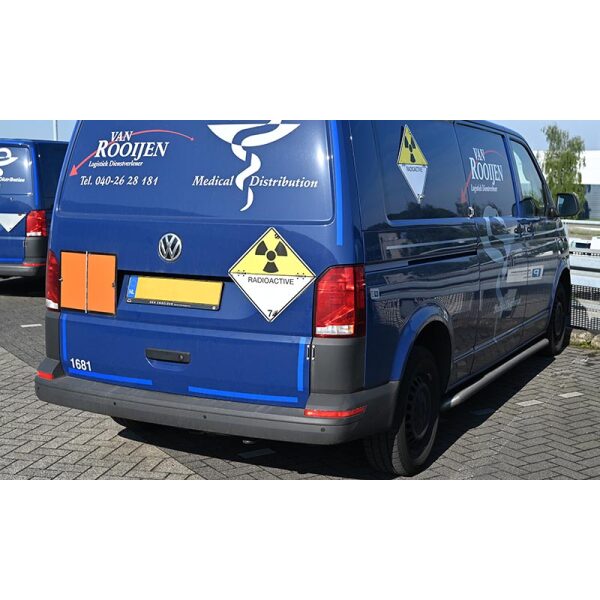 Wanneer het voertuig breder dan 2,1 meter is, dient de hele omtrek van de achterkant te worden beplakt. Dit mag in de kleuren rood of geel.